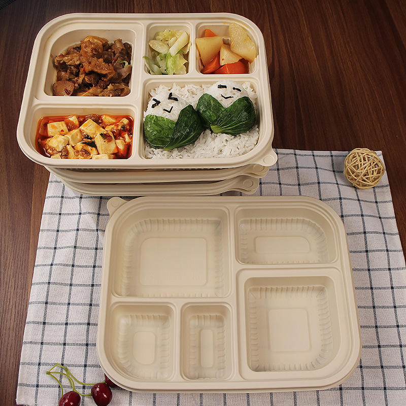 ภาชนะบรรจุอาหารแบบใช้แล้วทิ้งย่อยสลายได้ทางชีวภาพ 3 4 5 ช่อง ทำจากแป้งข้าวโพด สำหรับใส่อาหารกลางวัน อาหารแบบเบนโตะ อาหารแบบนำกลับบ้าน ขนมขบเคี้ยว เช่น มันฝรั่งทอด น้ำตาล