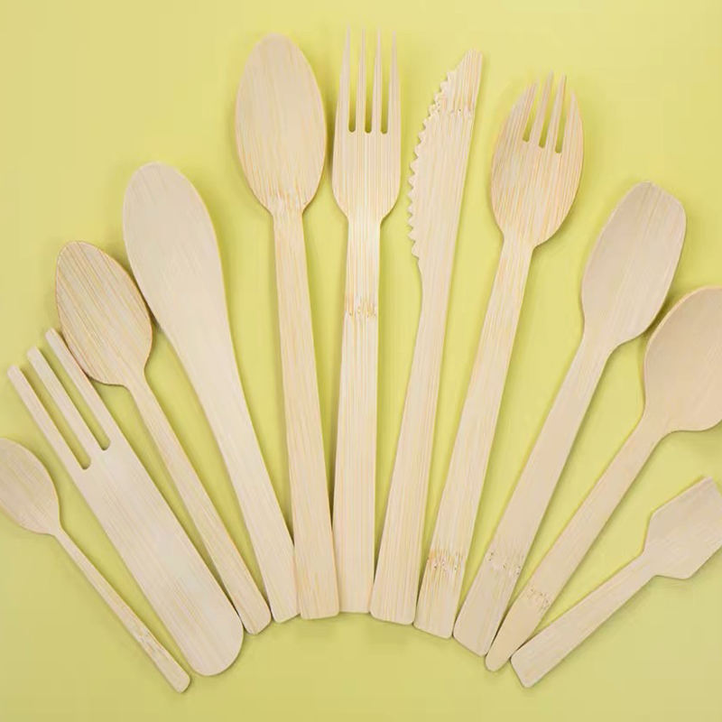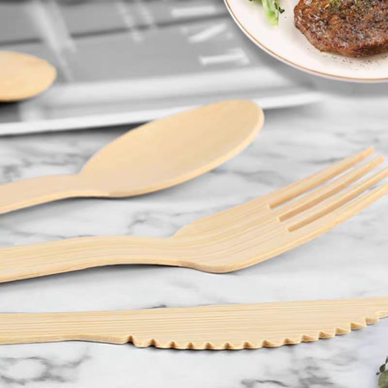ชุดช้อนส้อมไม้ไผ่ย่อยสลายได้ ทนความร้อน ห่ออย่างดี สำหรับงานเลี้ยง เค้ก ขนมปัง สลัด
