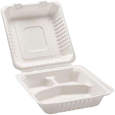 กล่องข้าวชานอ้อยแบบใช้แล้วทิ้งย่อยสลายได้ตามธรรมชาติกล่องใส่อาหารสไตล์คลาสสิกสำหรับซื้อกลับบ้าน