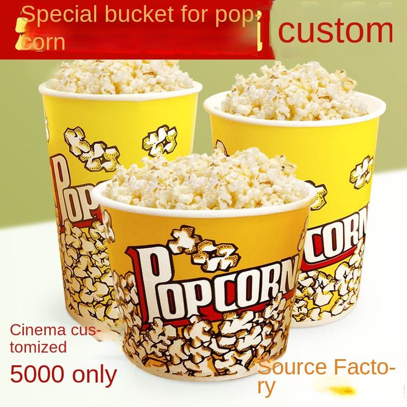 ถังป๊อปคอร์นแบบใช้แล้วทิ้ง ย่อยสลายได้ หนา สำหรับโรงภาพยนตร์และร้านอาหารแบบนำกลับบ้าน พร้อมโลโก้สั่งทำ-ขายส่ง