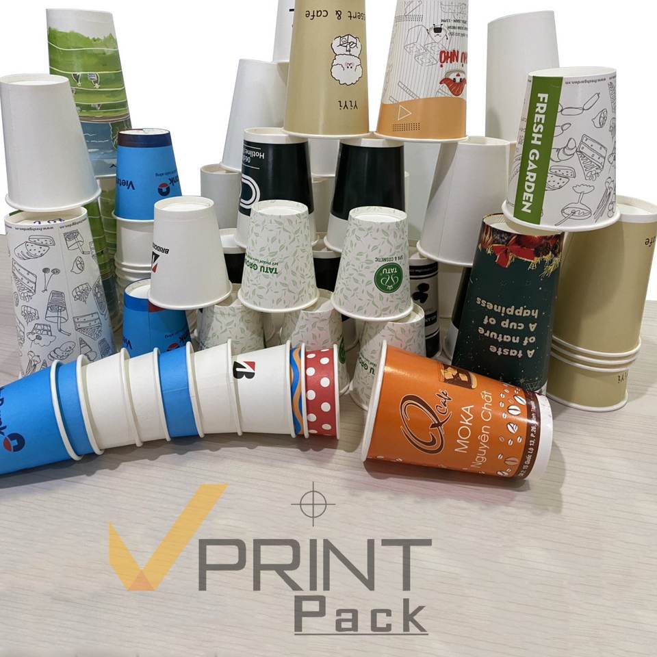 แก้วกระดาษคราฟท์สองชั้น ย่อยสลายได้ ขนาด 8 ออนซ์/12 ออนซ์ ยี่ห้อ VPRINTPACK จากเมืองโฮจิมินห์ สำหรับชา กาแฟ และเครื่องดื่มน้ำผลไม้