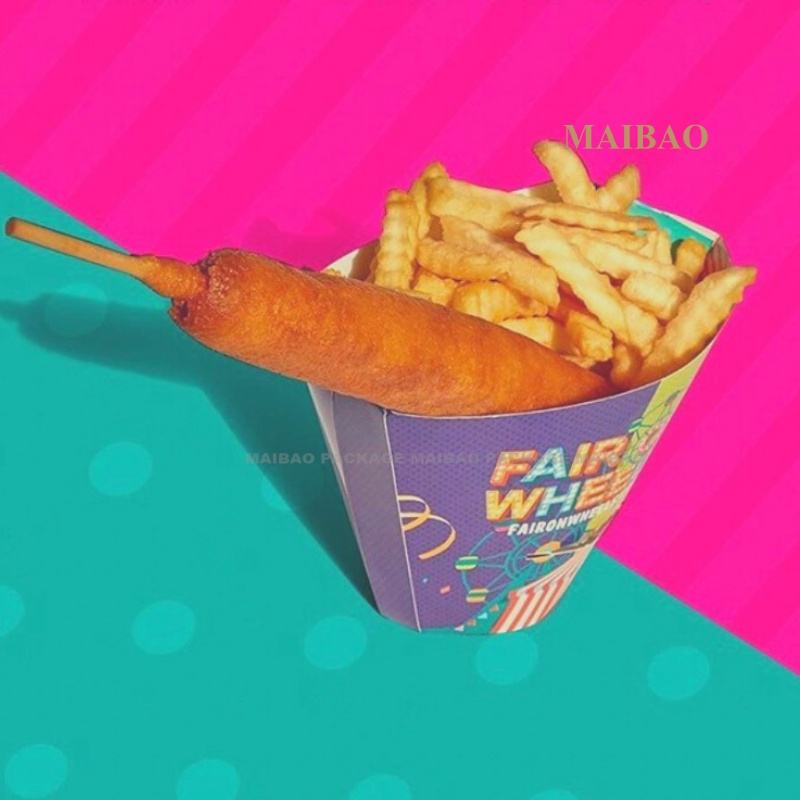 ถ้วยใส่อาหารว่างคราฟท์แบบย่อยสลายได้ภาชนะใส่อาหารแบบพกพาสำหรับเฟรนช์ฟรายไก่ทอดน้ำตาลในกระทะพิซซ่าบะหมี่