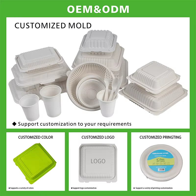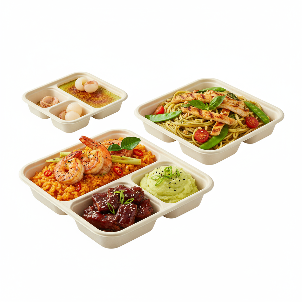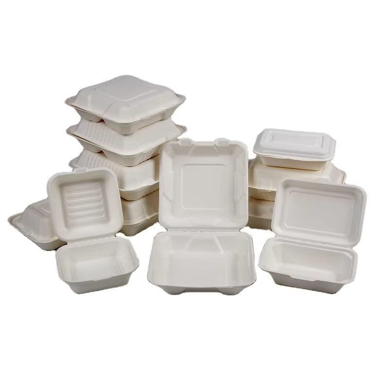 กล่องอาหารกลางวันแบบย่อยสลายได้พร้อมฝาปิดโปร่งใสบรรจุอาหารชานอ้อยพิมพ์ลายนูนสำหรับทำซูชิ