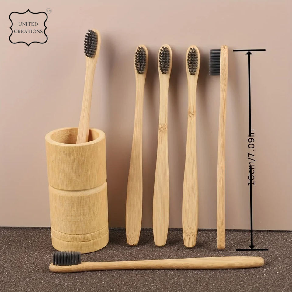 แปรงสีฟันถ่านไม้ไผ่ธรรมชาติย่อยสลายได้แปรงสีฟันขนแปรงอ่อนนุ่มสีเป็นมิตรต่อสิ่งแวดล้อม