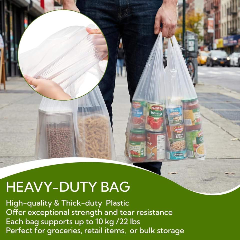 ถุงช้อปปิ้งพลาสติก PE ย่อยสลายได้แบบมีหูหิ้ว ใช้ซ้ำได้ สำหรับใส่ของชำ ธุรกิจขนาดเล็ก ซูเปอร์มาร์เก็ต