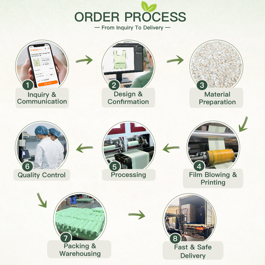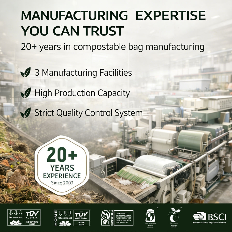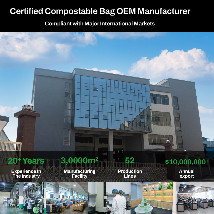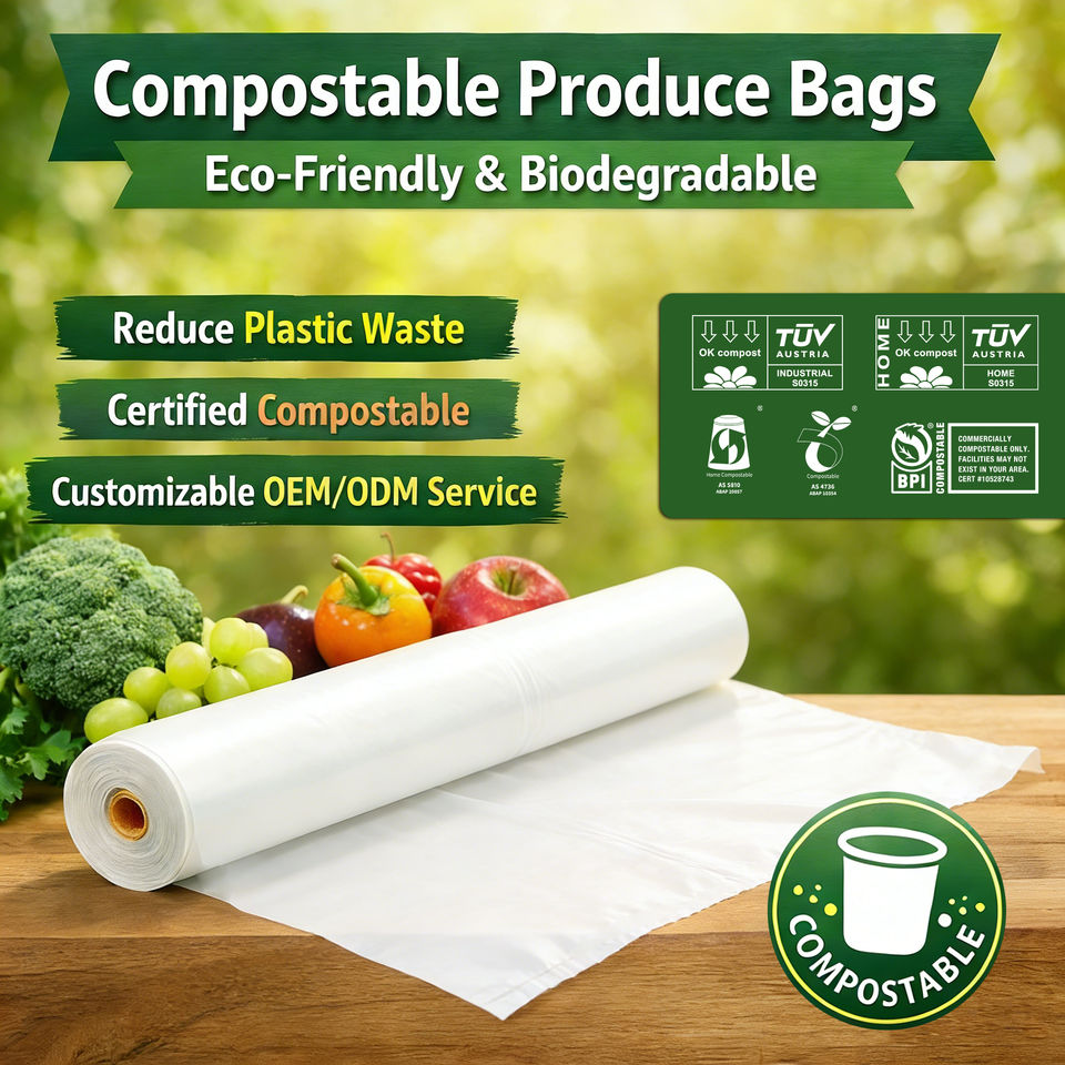 ถุงผลิตภัณฑ์ย่อยสลายได้ทางชีวภาพ ถุงผลไม้และผักแบบย่อยสลายได้จำนวนมาก 600 ชิ้น มาตรฐาน BPI ABAP AS5810 ถุงย่อยสลายได้ OEM Ecopro