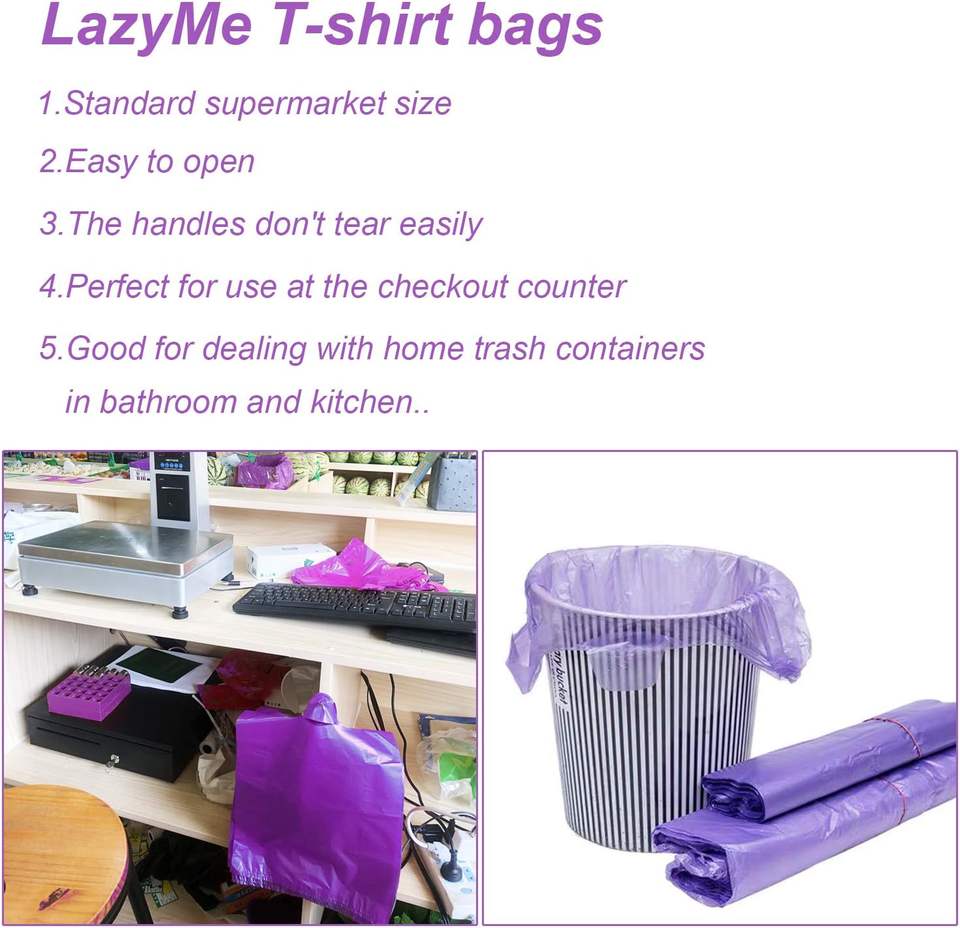 ถุงเสื้อยืดย่อยสลายได้ทางชีวภาพและถุงพลาสติกใส่ของชำแบบมีหูหิ้ว (ถุงหูหิ้วแบบมีก้นข้าง) จำนวนมากสำหรับการช็อปปิ้งและร้านอาหาร