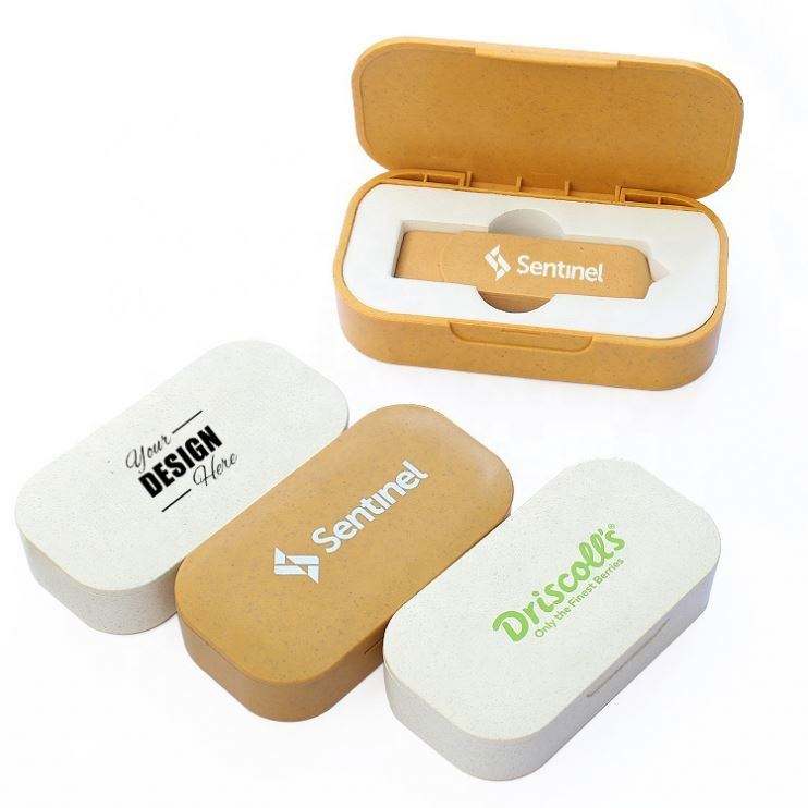 ชุดแฟลชไดรฟ์ USB ทำจากฟางข้าวสาลี ย่อยสลายได้ - ที่เก็บข้อมูลรักษ์โลกสำหรับธุรกิจ พร้อมตัวเลือกโลโก้แบบกำหนดเอง