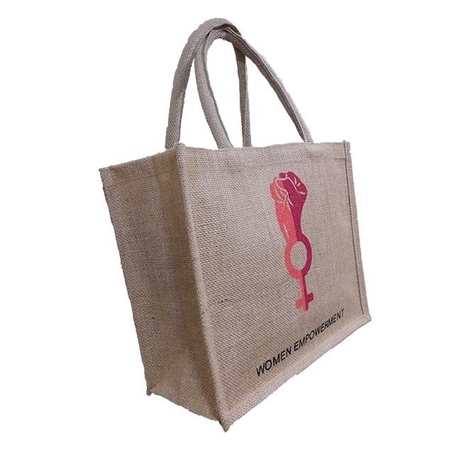 กระเป๋า Jute ช้อปปิ้งมีหูหิ้วขนาดใหญ่,ถุงผ้าปอถุงกันฝุ่นพิมพ์โลโก้ตามสั่งสำหรับผู้หญิงมีที่ย่อยสลายได้ตามธรรมชาติ