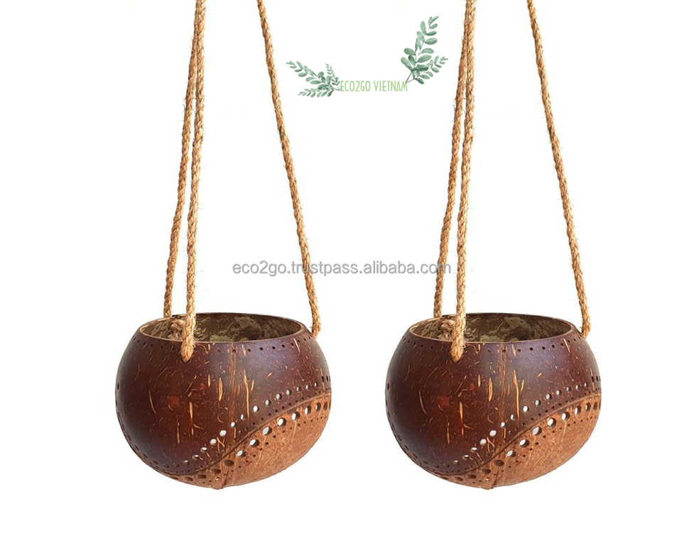 กระถางต้นไม้ทำจากเปลือกมะพร้าวธรรมชาติย่อยสลายได้ตามธรรมชาติและย่อยสลายได้ Eco2go สวนมะพร้าวสีเขียวพร้อมเชือกแขวน