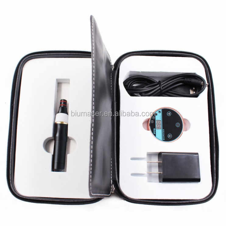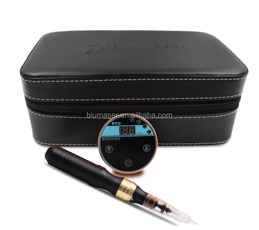 each set of Biomaser P70 pmu eyebrow tattoo machine kits is packed in a Biomaser PU leather box.