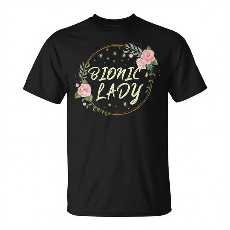 ไบโอนิค เลดี้เสื้อยืดผู้หญิงแขนสั้นคอกลมพิมพ์ลายดิจิตอลของขวัญขอบคุณ