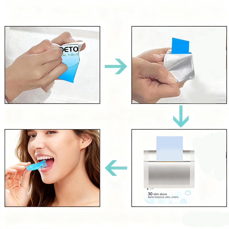 ฟิล์มดีท็อกซ์ไบโอติกผสมสำหรับการจัดการน้ำหนักแผ่นบางในช่องปากพร้อมวิตามินสำหรับผิวใส