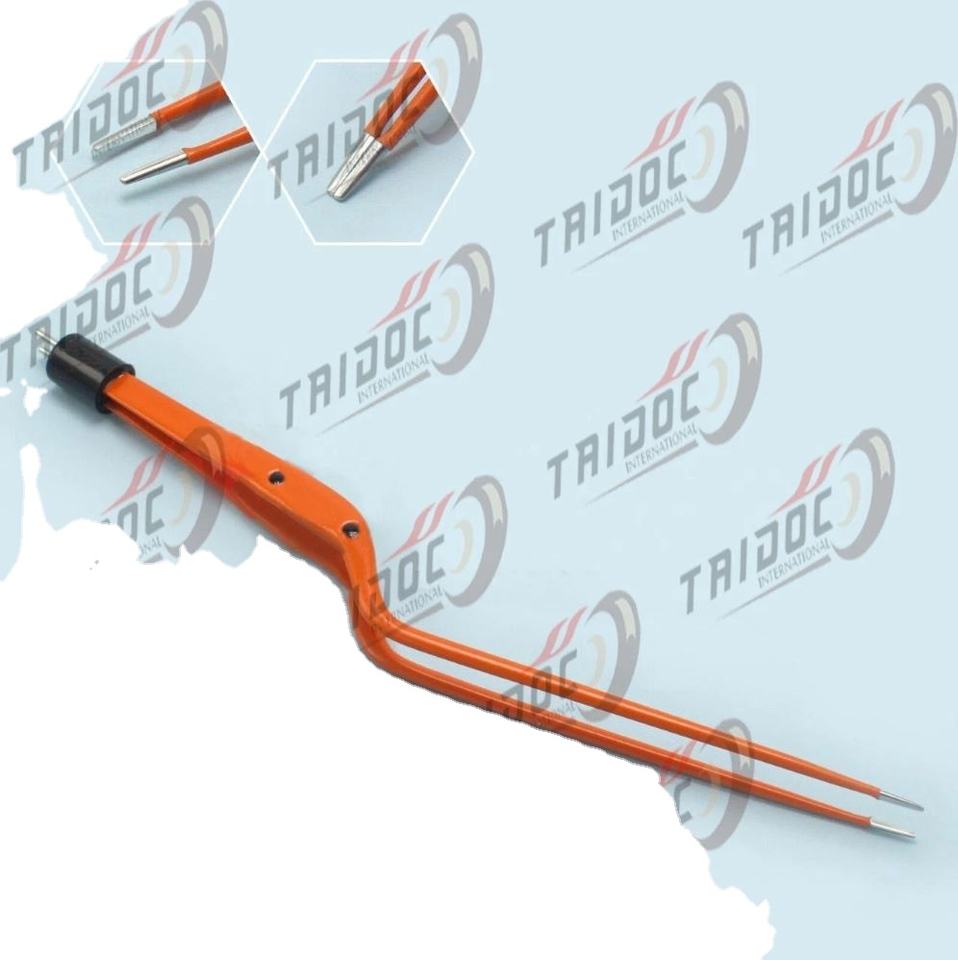 คีมไฮดรอลิกแบบไม่ติดผิวสเตนเลสสตีลแบบสองขั้ว หุ้มฉนวน ขนาด 8 1/2 นิ้ว ปลายงอ 1 มม. สำหรับการจี้ห้ามเลือด