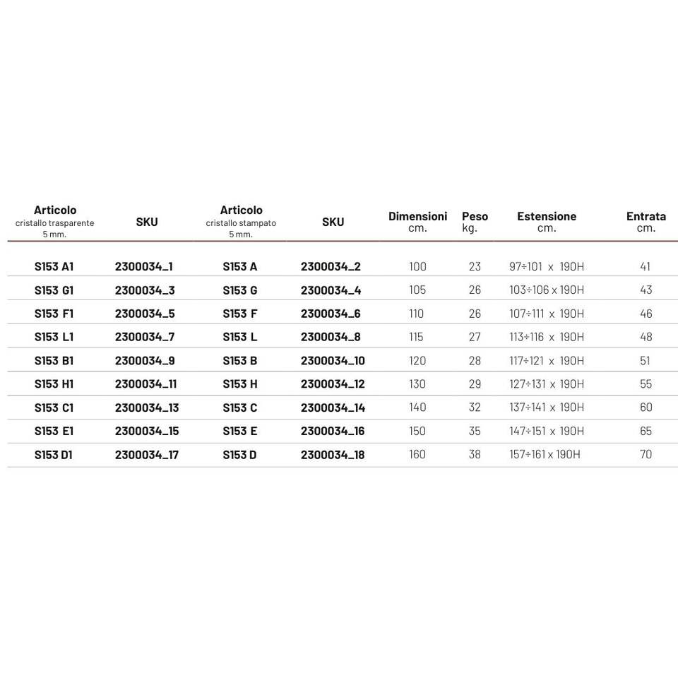 Birch S153 Sliding Door 5mm Glass with Two Doors Chrome IX Shower Box Adjustable Size 120 cm