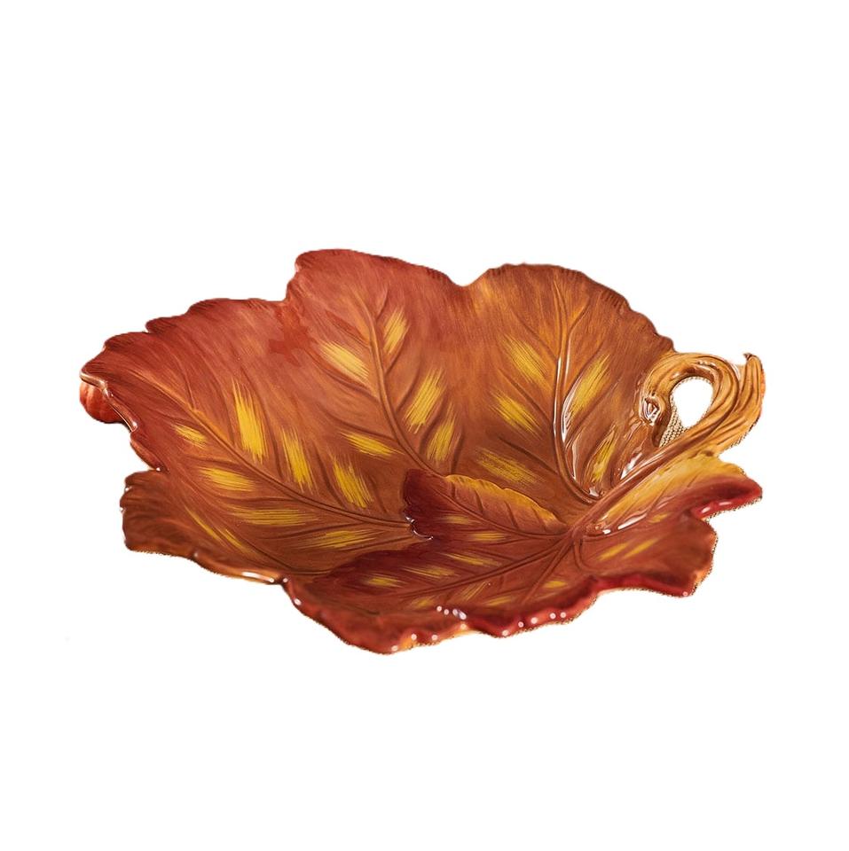 จานประดับขนนกสีทองสไตล์โบราณรูปนกถาดเครื่องประดับรูปใบไม้และจานเสิร์ฟสำหรับตกแต่งบ้าน