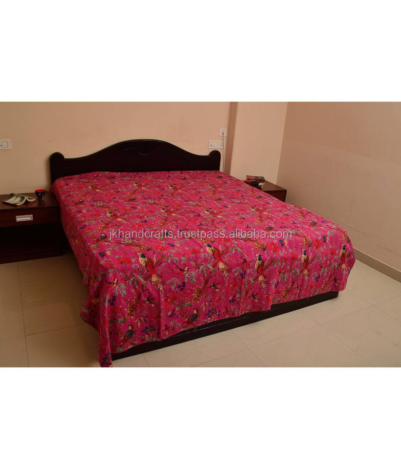 ผ้าคลุมเตียงพิมพ์ลายนกสไตล์อินเดียใหม่