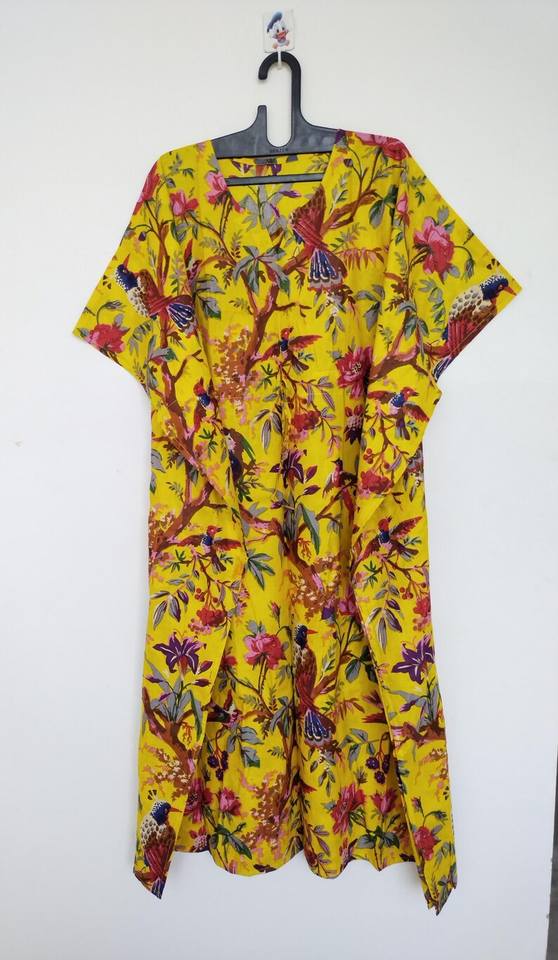 ชุดเดรสผ้าฝ้ายอินเดียพิมพ์ลายนก งานแฮนด์เมด น้ำหนักเบา สไตล์กิโมโน