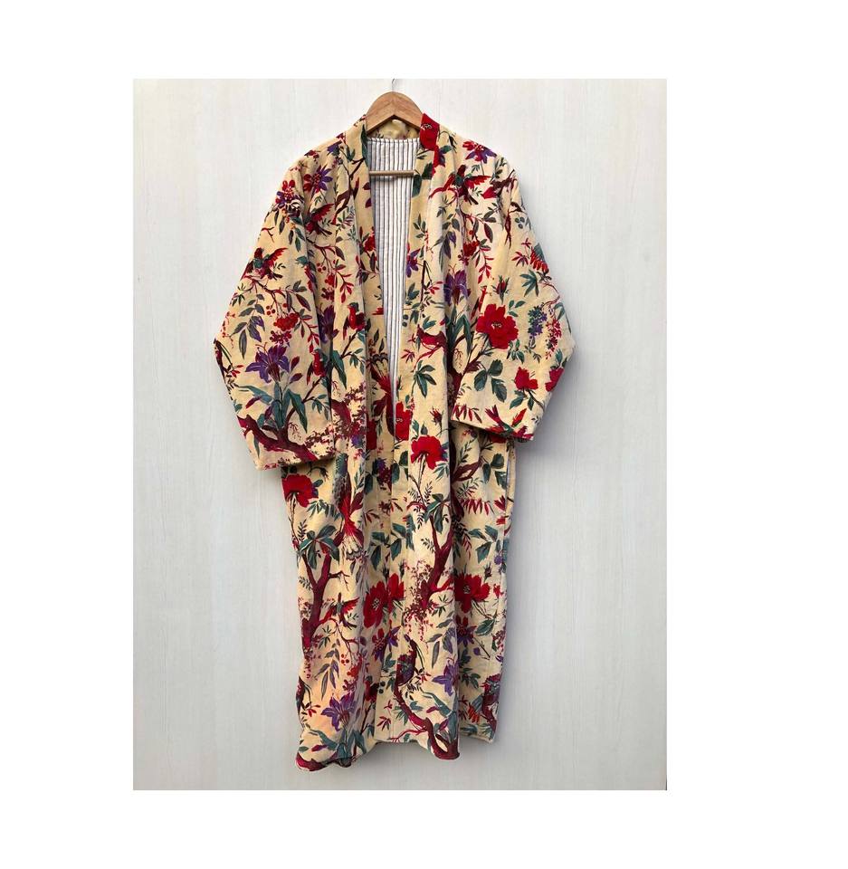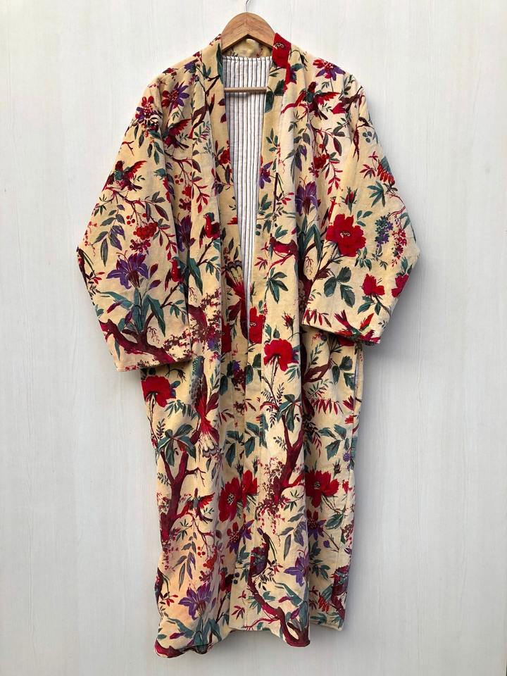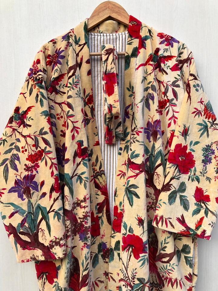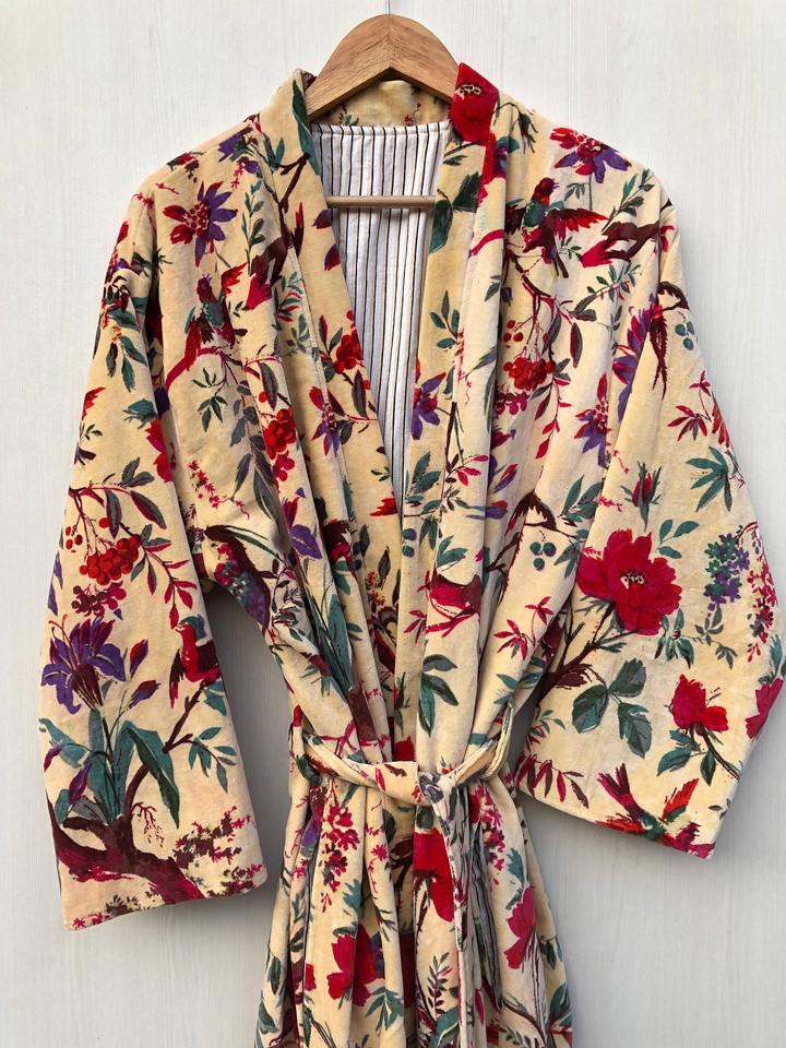 ชุดกิโมโนผ้ากำมะหยี่พิมพ์ลายนก: ผ้าคอตตอนบันยันปัดฝุ่น
