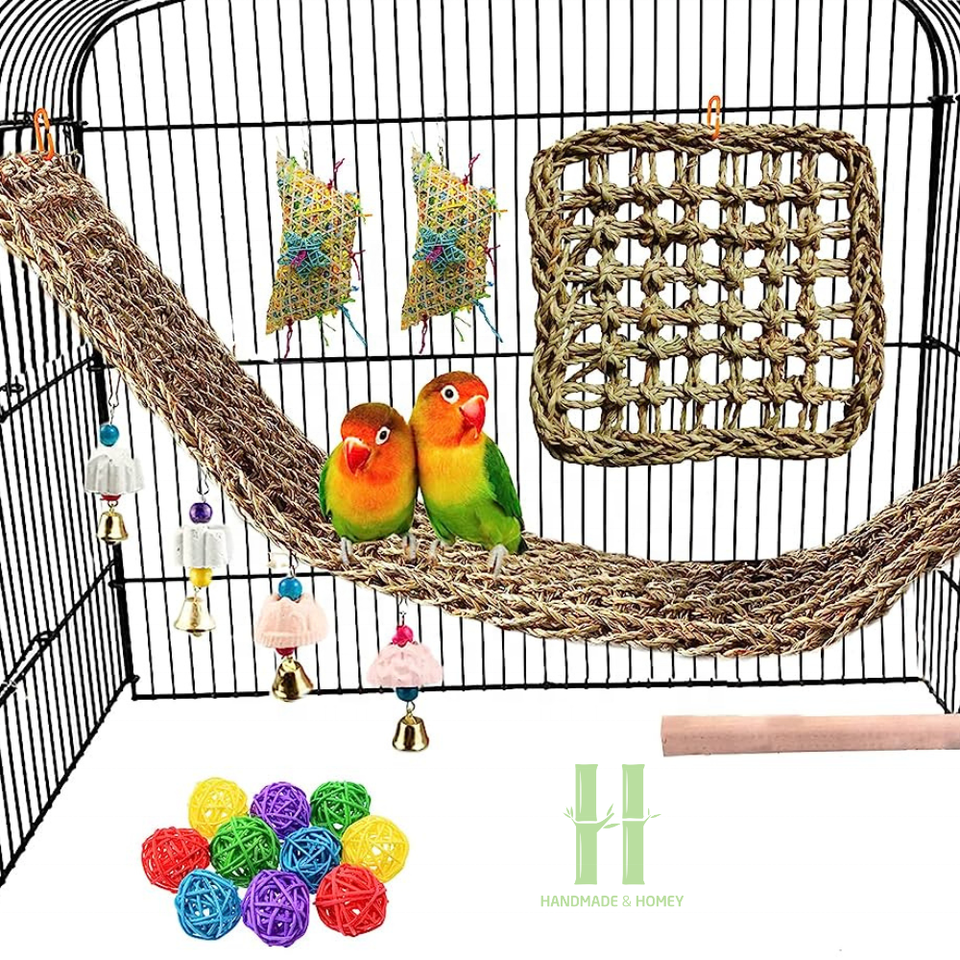 เสื่อหญ้าทะเลลายนกสินค้ามาใหม่เสื่อหญ้าทะเลธรรมชาติของเล่นนกแก้วทำด้วยมือเป็นมิตรกับสิ่งแวดล้อมจากเวียดนาม
