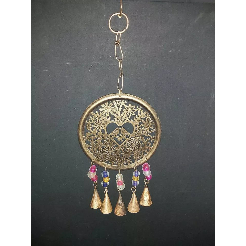 กระดิ่งลมรูปหัวใจสำหรับตกแต่งบ้านทำจากโลหะกระดิ่งลมสีทองสำหรับแกะสลักรูปนกอย่างยั่งยืน
