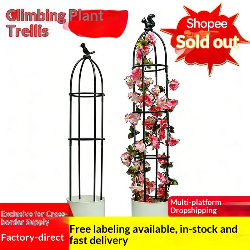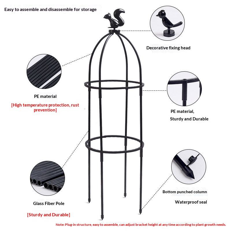 เสาค้ำต้นไม้รูปนกสีดำสำหรับปลูกดอกไม้ ระเบียงบ้าน ไม้เลื้อย เช่น ดอกกุหลาบ ดอกเคลมาติส ไม้ประดับ เช่น ดอกชลัมเบอร์เกรา