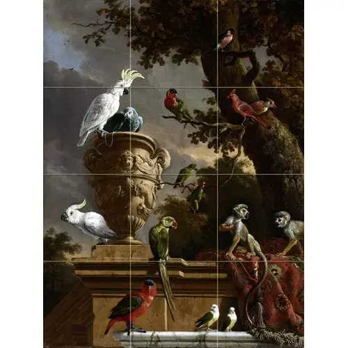 นกแก้วนกและลิงกระเบื้องภาพจิตรกรรมฝาผนังห้องครัวและห้องน้ำผนังกันน้ำในวัสดุเซรามิกหินอ่อน