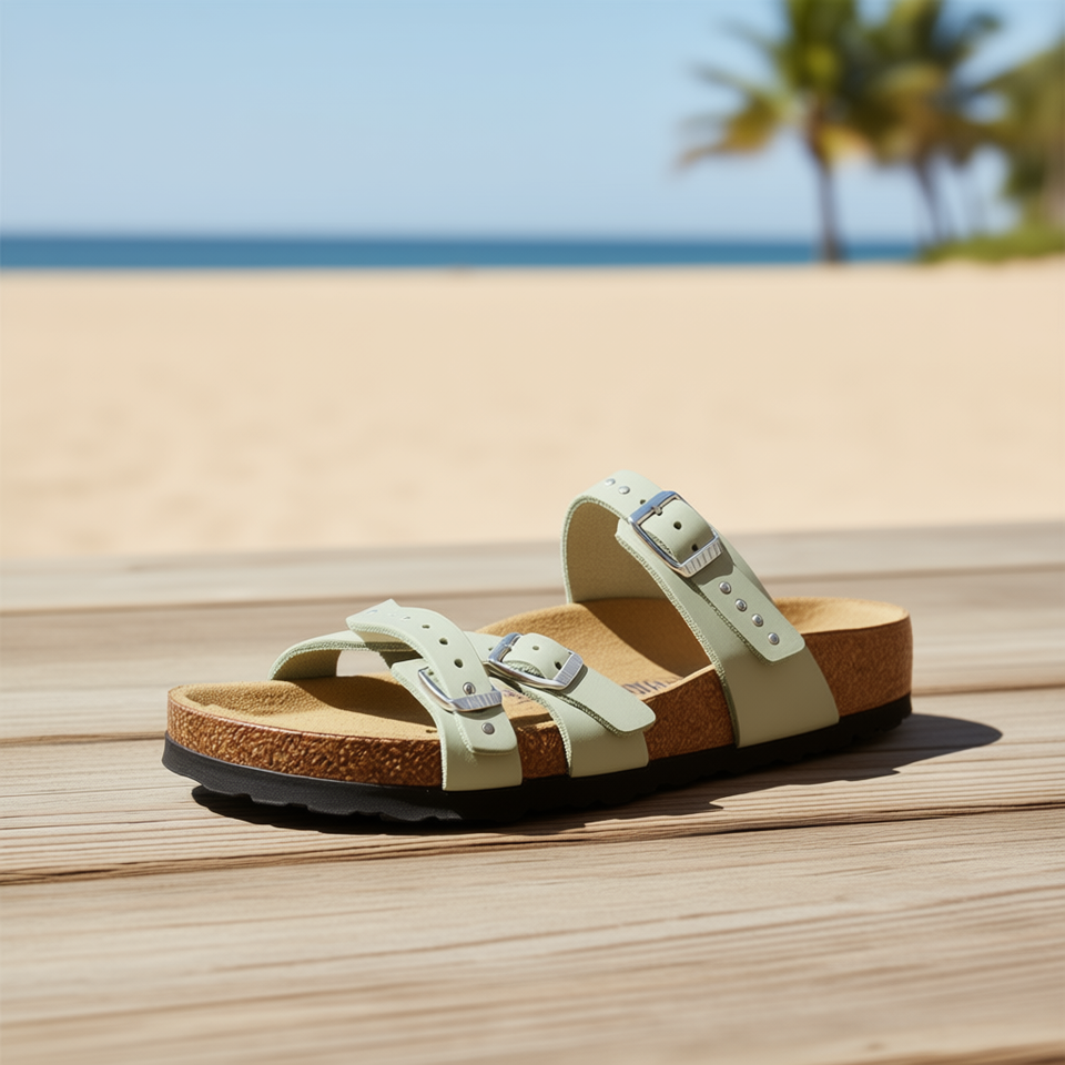 รองเท้าแตะหนัง Birkenstock Franca สีมัทฉะ แบบ unisex สายรัดหัวเข็มขัด รองเท้าลำลองสำหรับฤดูร้อน พื้นรองเท้าด้านในทำจากไม้ก๊อก พื้นรองเท้าด้านนอกทำจากยาง