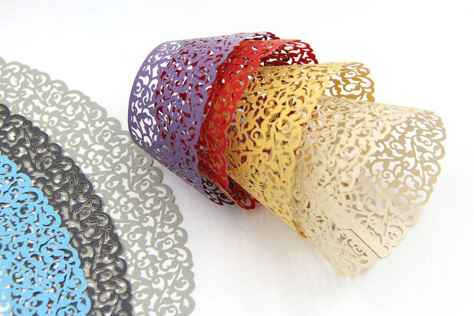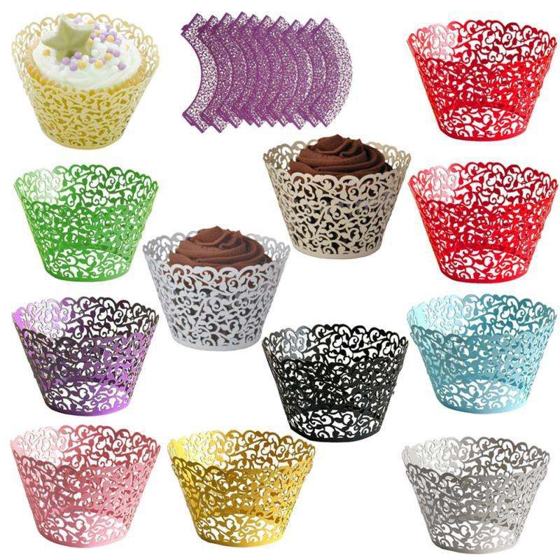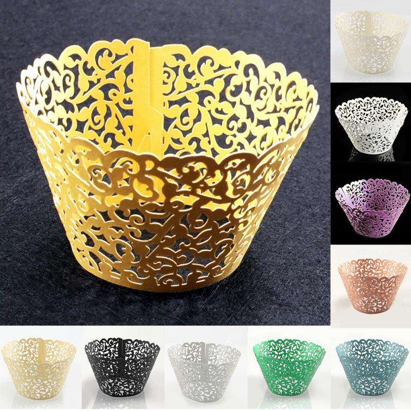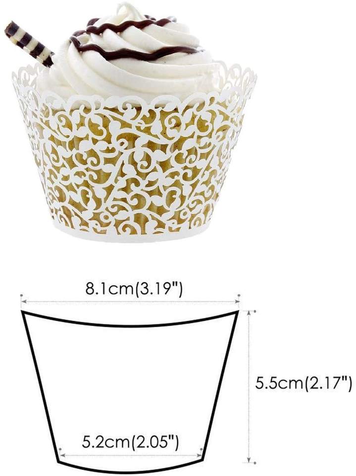 อุปกรณ์ตกแต่งหน้าเค้กวันเกิด,ที่ใส่คัพเค้กสีขาวที่ห่อแบบเลเซอร์สำหรับงานแต่งงานงานเลี้ยง