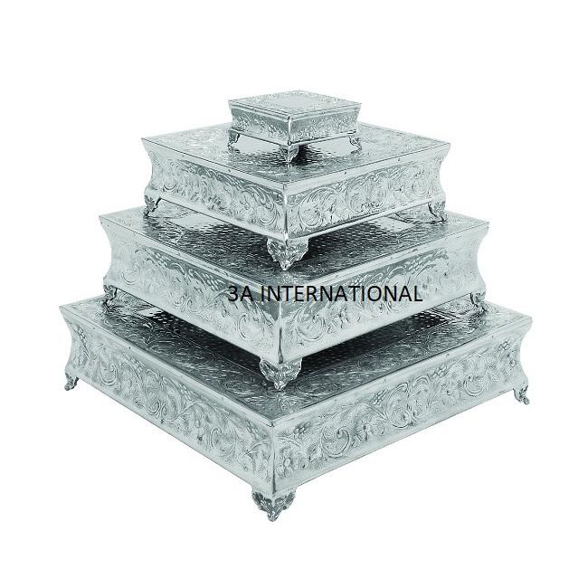 แท่นวางเค้กโลหะอลูมิเนียมสำหรับใช้ในบ้านงานเลี้ยงฉลองครอบครัวชุดวางเค้กโลหะ4ชิ้นแบบอเนกประสงค์