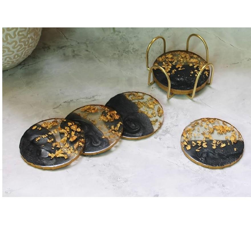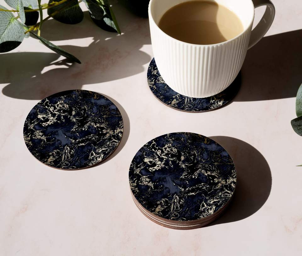 แผ่นรองแก้วสีดำลายอาเกตขอบสีทอง สำหรับงานเลี้ยงวันเกิด ดีไซน์ตกแต่งทันสมัย