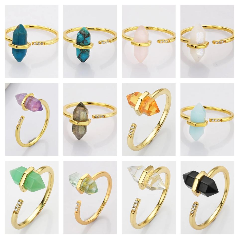พลอยซิทรินหัวแหลมแบบคู่พร้อมแหวนปรับขนาดได้ CZ สำหรับผู้หญิง
