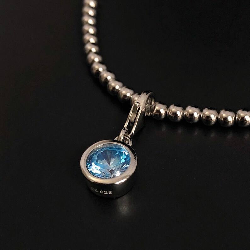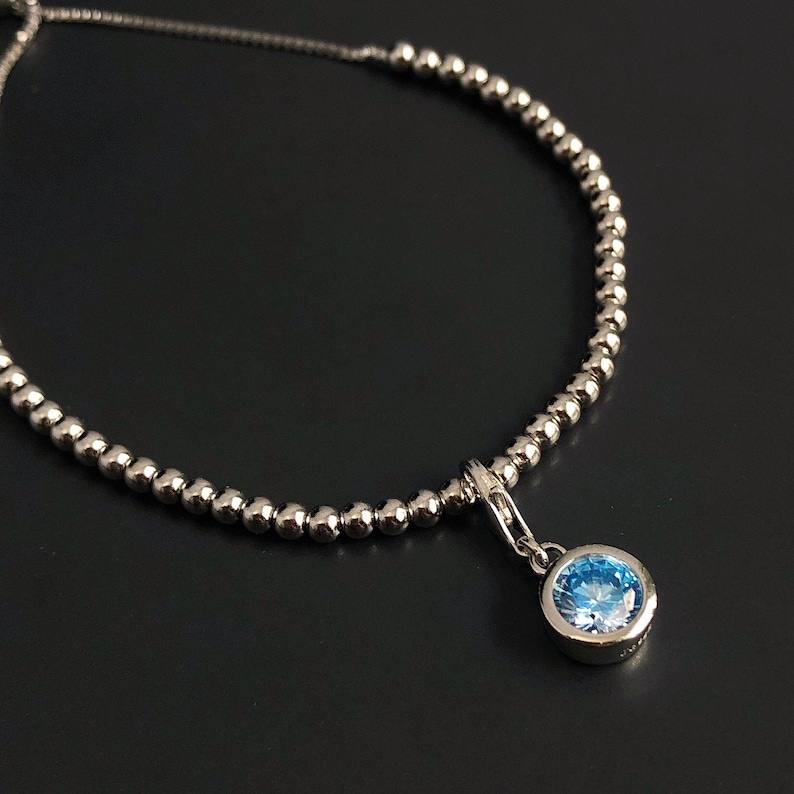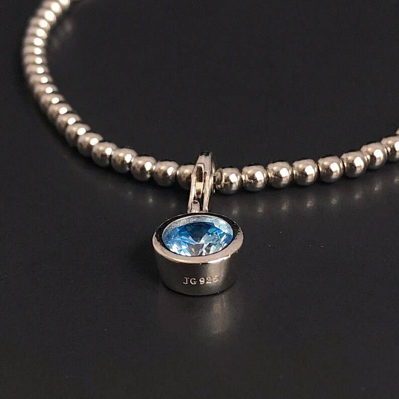 สร้อยข้อมือเงินแท้ประดับพลอยอะความารีนประจำเดือนมีนาคม ของขวัญสำหรับผู้หญิง