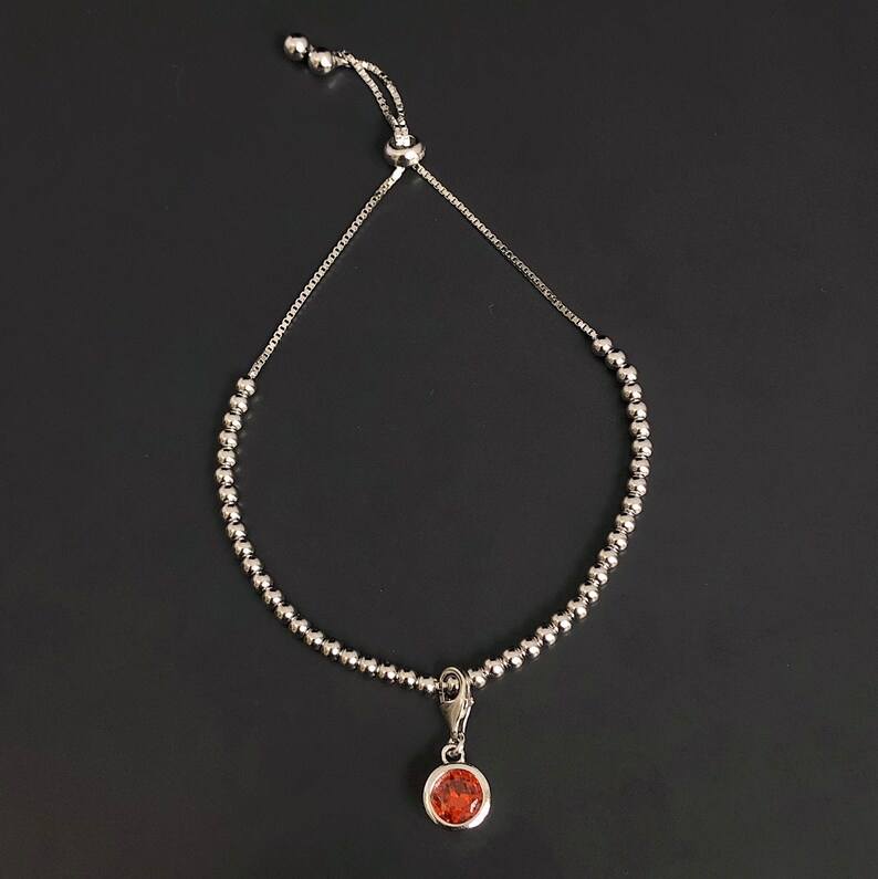 สร้อยข้อมือเงินแท้ประดับพลอยโกเมนสีแดงประจำเดือนมกราคม ของขวัญสำหรับผู้หญิง