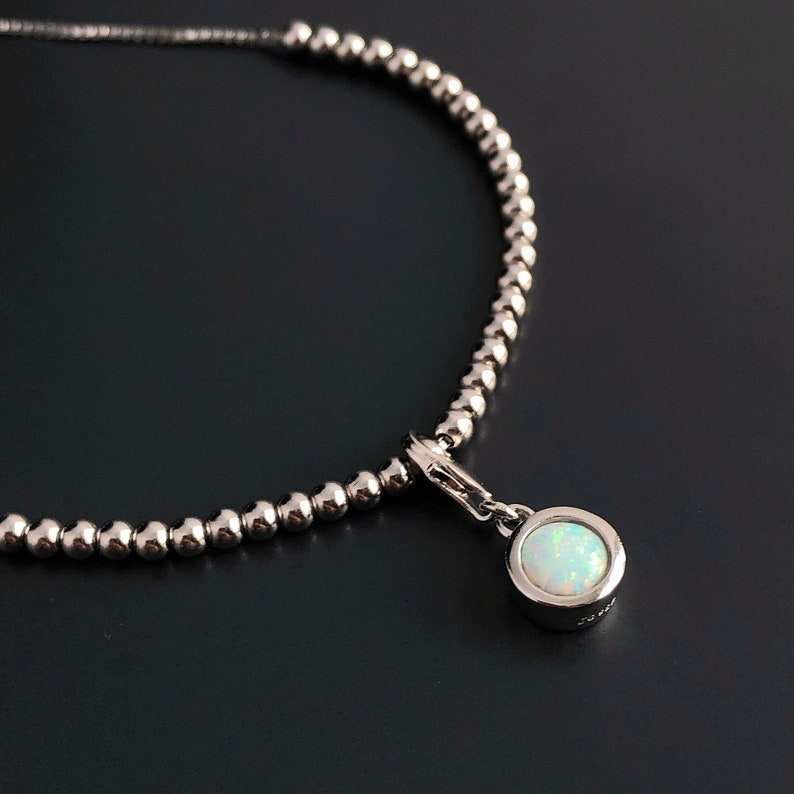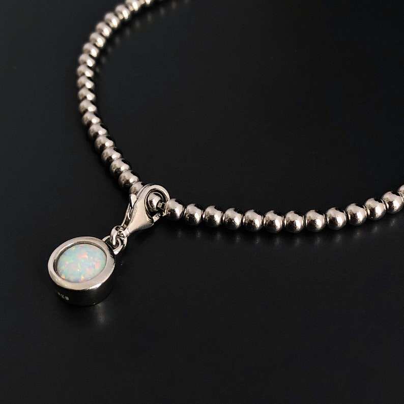สร้อยข้อมือชาร์มประดับพลอยประจำเดือนเกิด เงินแท้ โอปอล พลอยประจำเดือนตุลาคม ของขวัญสำหรับผู้หญิง