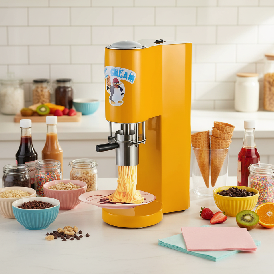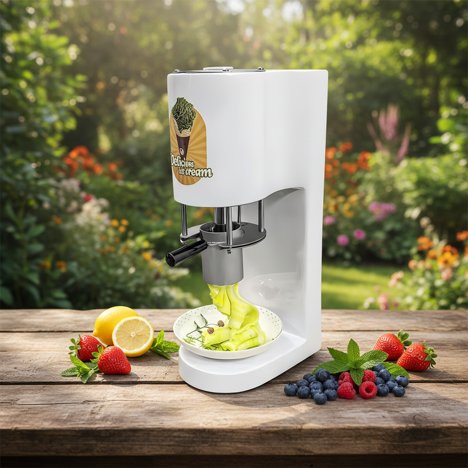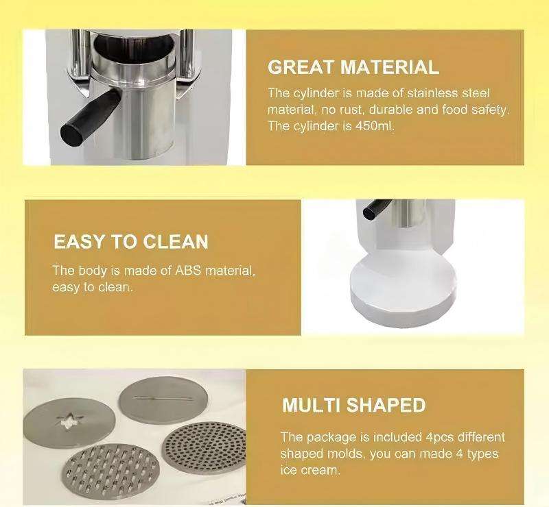 เครื่องทำน้ำแข็งไส้กรอก Birui BR-80W สีแดง/ขาว/ส้ม ความจุ 420 มล. ผลิตในอิตาลี กำลังไฟ 80 วัตต์ สำหรับทำเส้นพาสต้า ไอศกรีมซอฟต์เสิร์ฟ ไอศกรีมเกลียว ขนมขบเคี้ยว และสปาเก็ตตี้