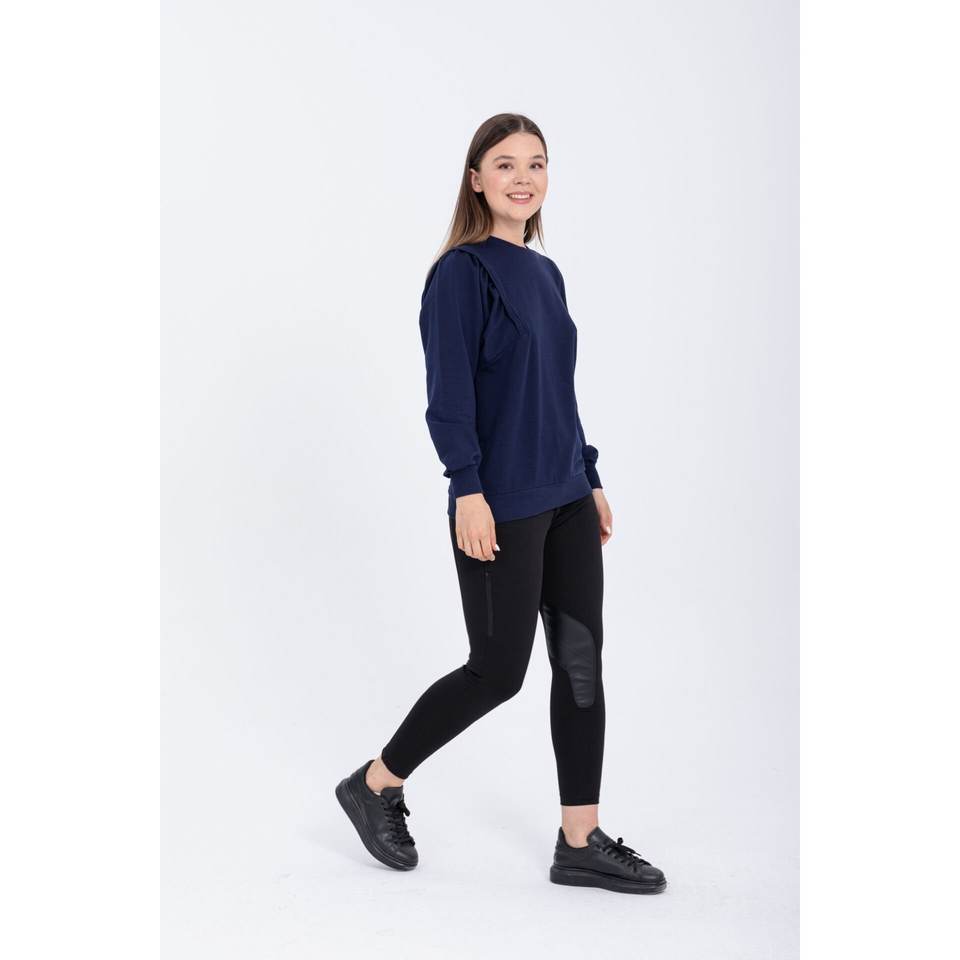 Bisiklet Yaka UZUN kollu kadın sweat lacivert