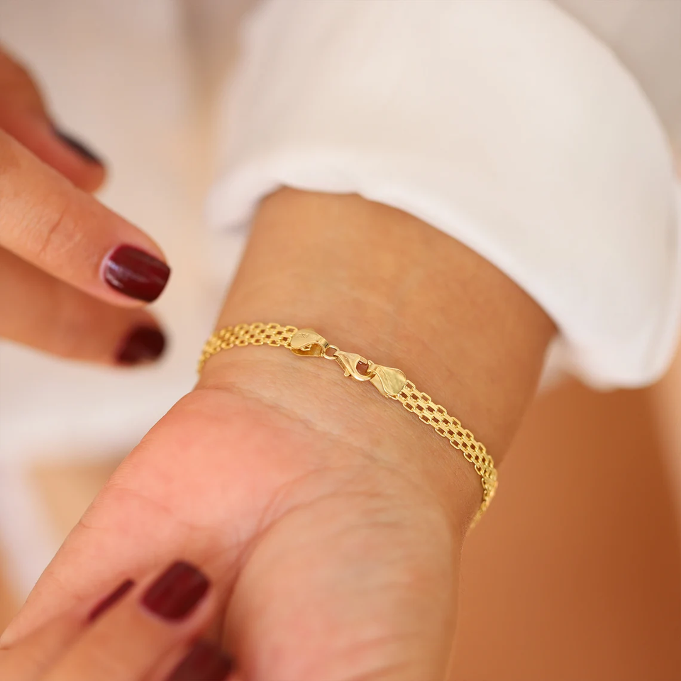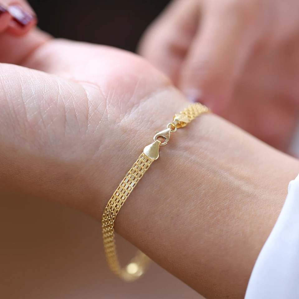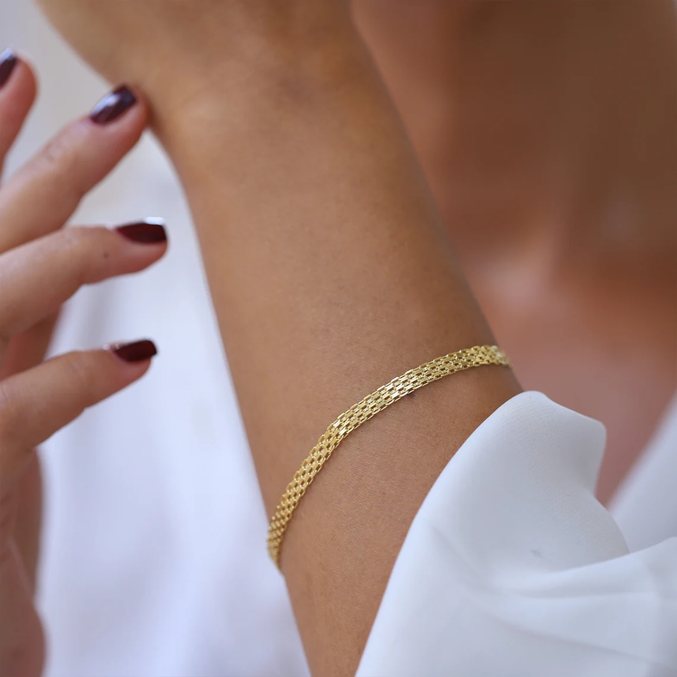 สร้อยข้อมือโซ่บิสมาร์ก14K สร้อยข้อมือชุบทองสีเหลืองสร้อยข้อมือ4.4มม. สำหรับเครื่องประดับแฟชั่นทุกเพศ