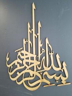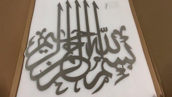 Bismillah ด้วยลายมือที่สวยงามในสคริปต์ภาษาอาหรับใช้กันอย่างแพร่หลายและใช้บ่อยสำหรับการตกแต่งในบ้านและมัสยิด