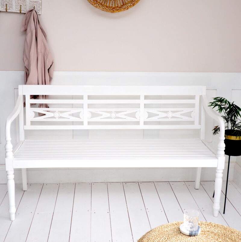 ม้านั่งไม้สักแท้สำหรับลานบ้าน ยี่ห้อบิทซี่ พร้อมเคลือบสีขาว