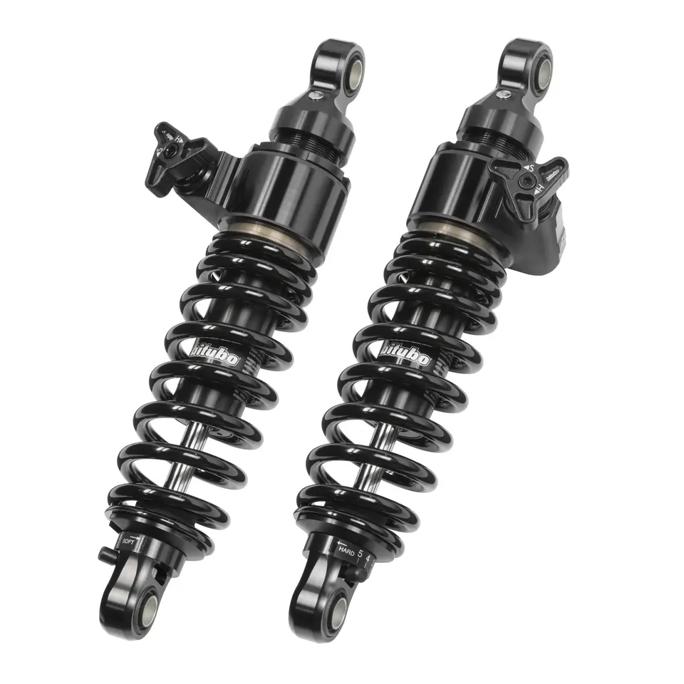 Bitubo Twinshocks โช้คอัพรถจักรยานยนต์แบบปรับได้สำหรับ Harley Davidson Fxdb Dyna Street BOB 306มม. สปริงสีดำ