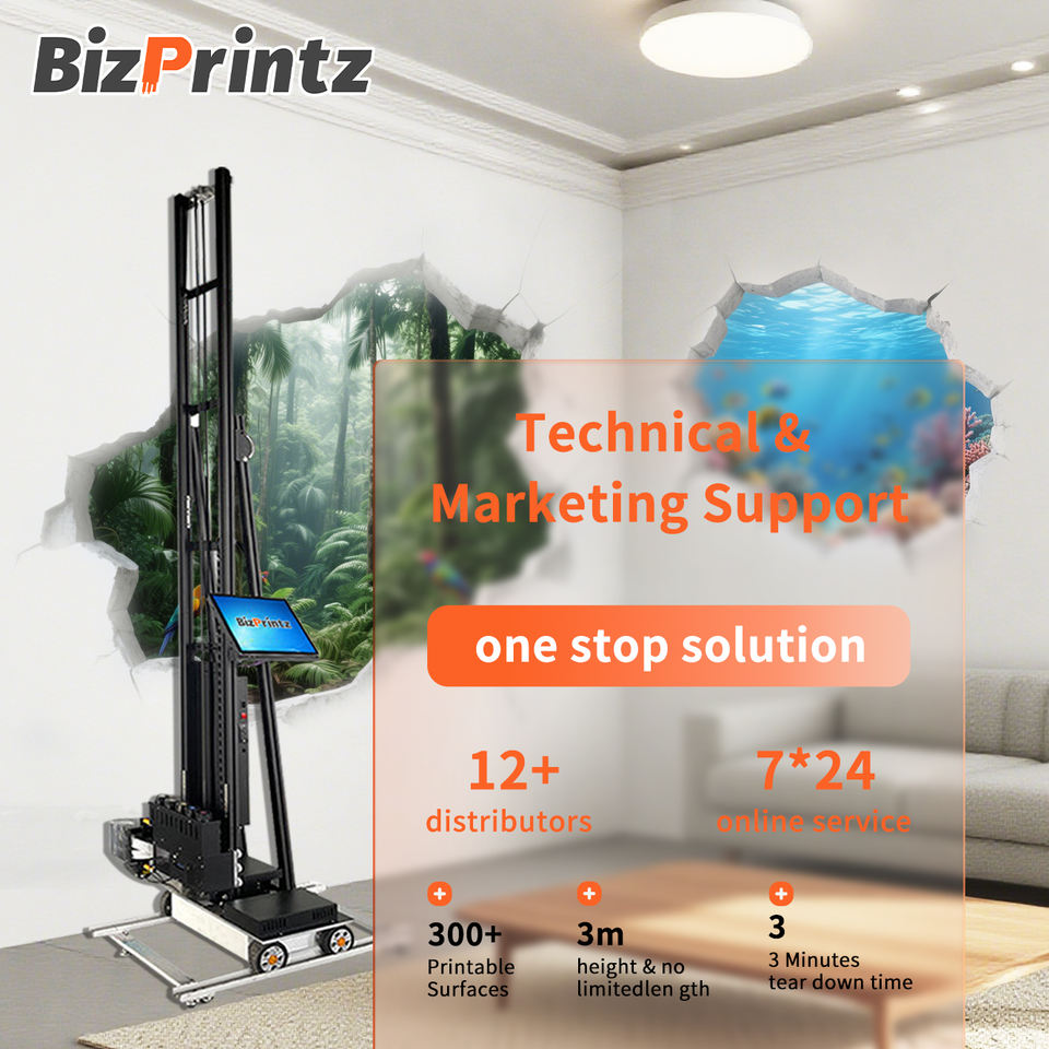 Bizprintz เครื่องพิมพ์3D ติดผนังระบบอัตโนมัติ UV เครื่องปริ้นเตอร์อิงค์เจ็ทสภาพใหม่สำหรับการออกแบบภาพจิตรกรรมฝาผนังเครื่องพิมพ์วอลล์เปเปอร์หมึก UV