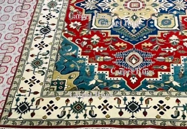 Bizar พรมดีไซน์คลาสสิก8x10หรูหราสไตล์ราชวงศ์พรมขนสัตว์สีแดงสีเบจพรมพื้นที่ถักด้วยมือสำหรับรถยนต์
