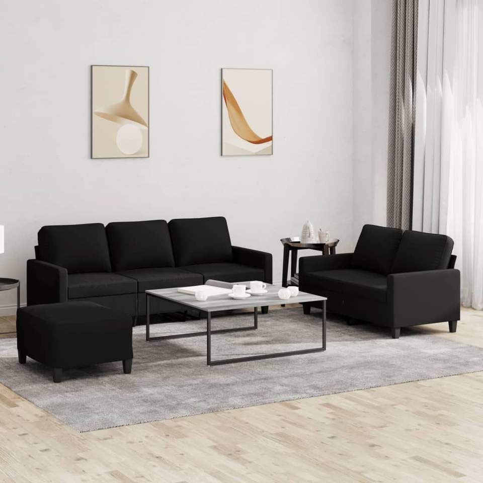 ชุดโซฟาผ้าโพลีเอสเตอร์สีดำ 100% พร้อมโครงไม้อัดเท็กซ์ไทล์โลหะสำหรับห้องนั่งเล่น