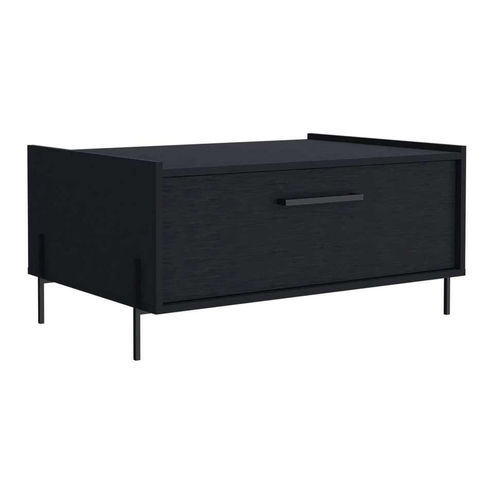 โต๊ะกาแฟสีดำขนาด 15.6 นิ้ว พร้อมชั้นวาง 1 ชั้นและขา 4 ขา