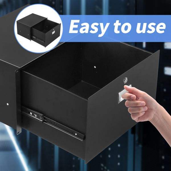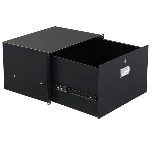 ตู้ลิ้นชักอุปกรณ์แผ่นเหล็ก6U 19 "สีดำพร้อมกุญแจสายเคเบิลและอุปกรณ์เสริม