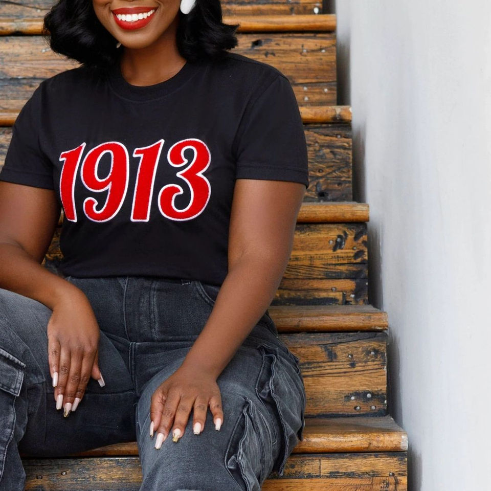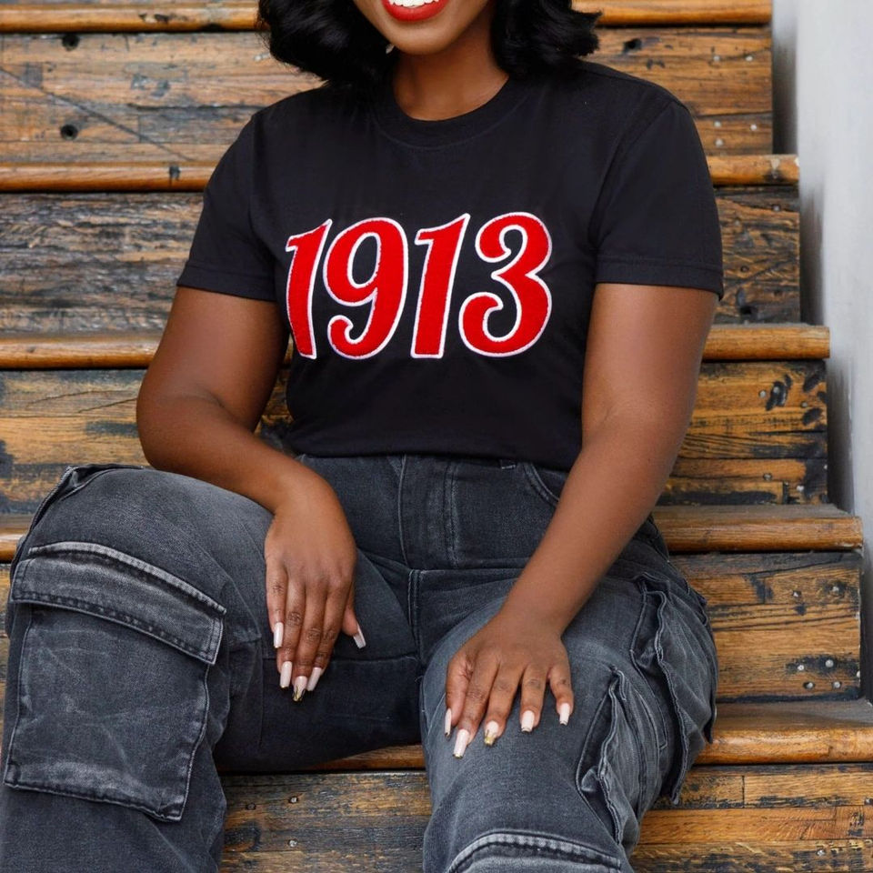 เสื้อยืดสีดำ 1913 DST ปักลายเชนิลล์ กระดุมติด ผ้าฝ้ายพรีเมียม เป็นมิตรกับสิ่งแวดล้อม เสื้อผ้าชมรมกรีก เสื้อยืดเดลต้าลำลอง สไตล์ไพรด์