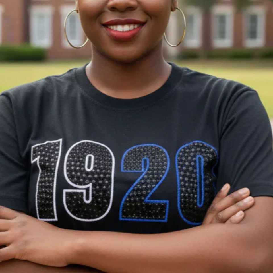 เสื้อยืดสีดำลายตัวอักษรหนังจระเข้ รุ่นปี 1920 สำหรับผู้หญิง ผ้าฝ้าย 100% เสื้อผ้าชมรมนักศึกษา Zeta Phi Beta ฉลองครบรอบ แฟชั่นสไตล์เฮอริเทจ