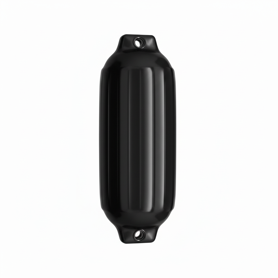 กันชนเรือสีดำ ขนาด 27x85 มม. แพ็ค 4 ชิ้น พร้อมบานพับโลหะผสมและเหล็กทนรังสียูวี 3 มม. พร้อมสายยาง