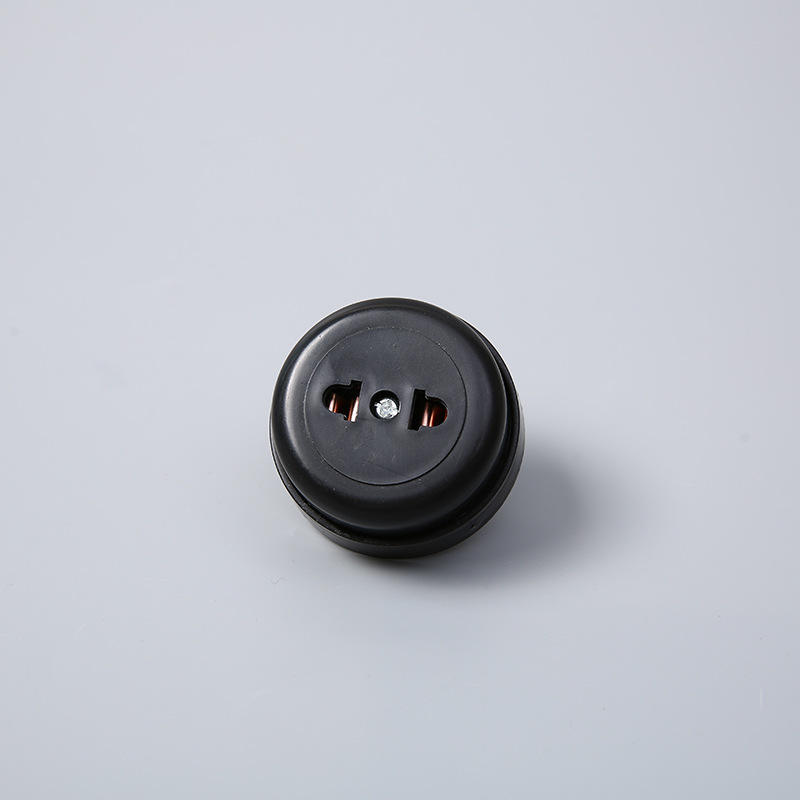 เต้ารับติดผนังสีดำ 303 แบบเดี่ยว 230V ป้องกันไฟดูด วัสดุพลาสติก มาตรฐานการต่อสายดิน แบบแอฟริกัน ทรงกลม ติดตั้งบนพื้นผิว